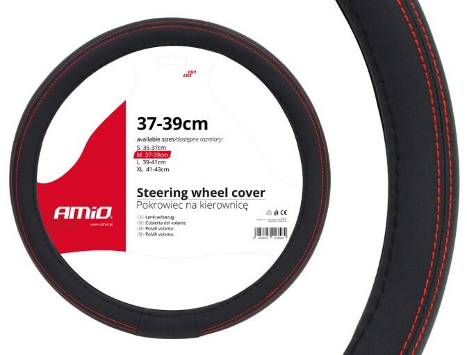 AMIO Bőrhatású kormányvédő univerzális fekete piros varrással