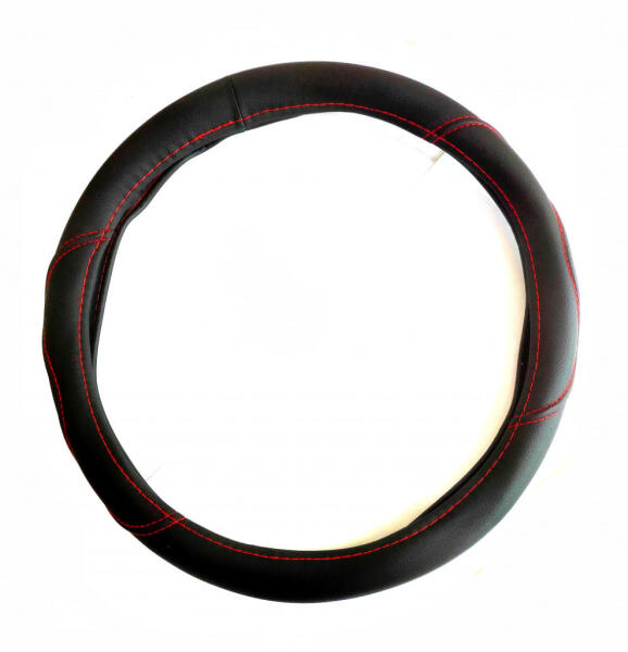Autolife Bőrhatású kormányvédő piros varrással 38cm (KV-2127R) - olaj